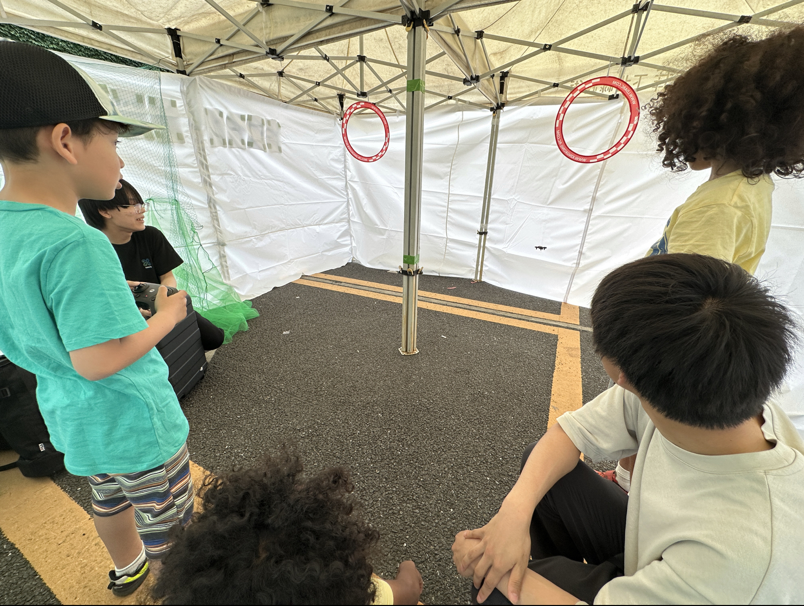 メインのイベントとして、マイクロドローンの操縦体験を行いました。
