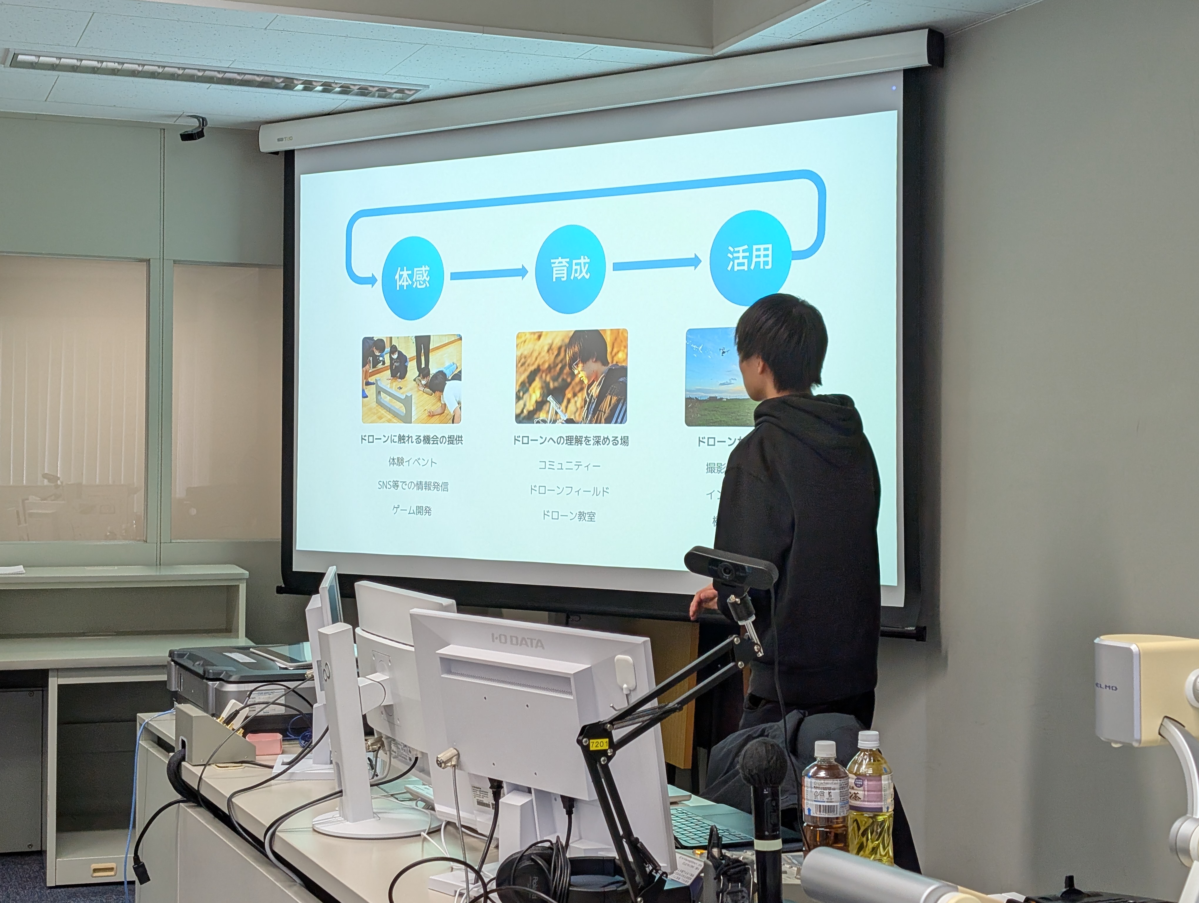 - 教育現場との連携 文教大学湘南キャンパスにて、大学生・N/S高生を対象としたワークショップを開催。シミュレーターだけでなく、実際にドローンに触れる楽しさを伝える活動もここから加速しました。記事を見る→