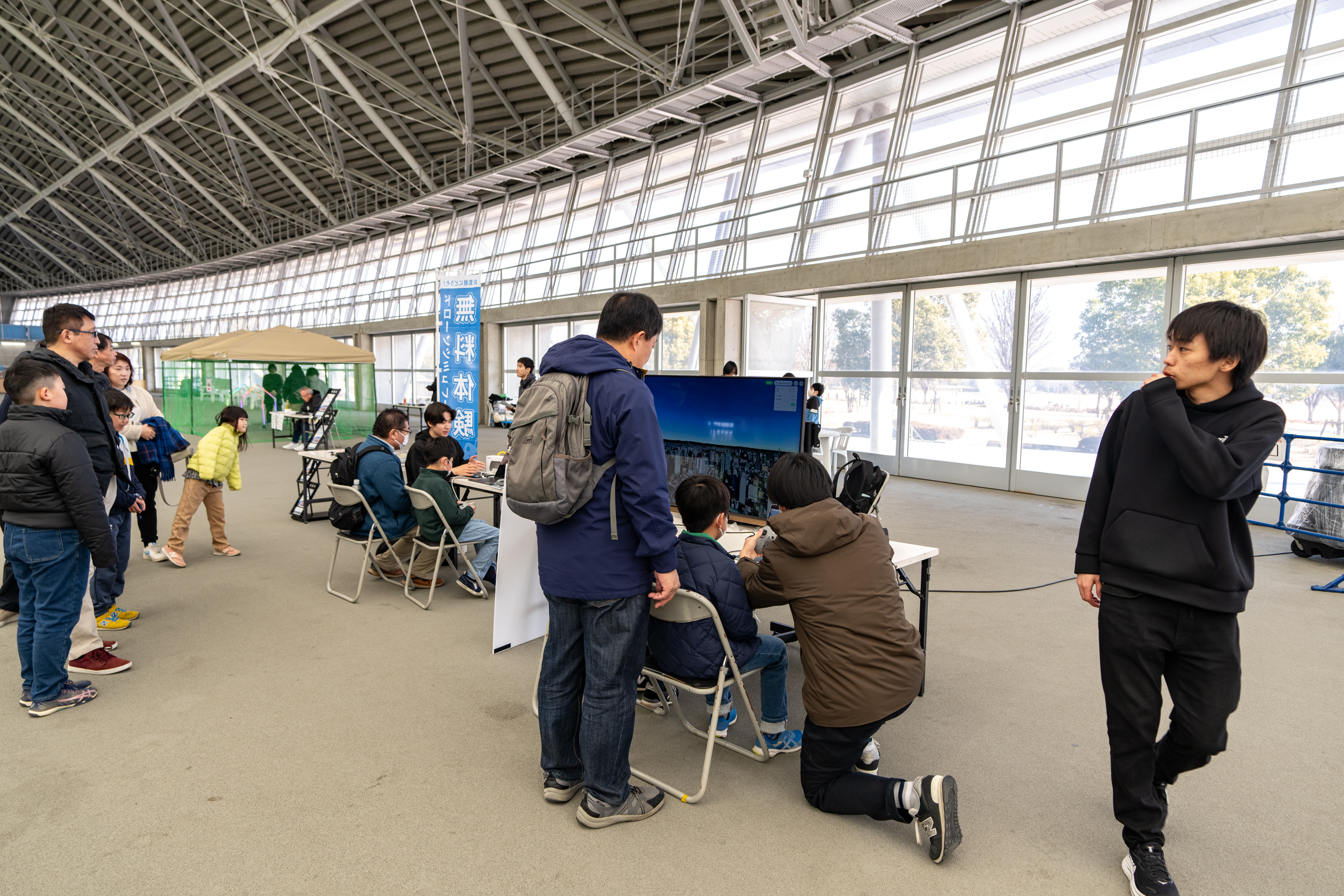 WEB上で気軽に世界の空を飛べる新しいシミュレーターには、子どもから大人まで幅広い年代の方々にご参加いただきました。初めての方にも楽しみながら操縦に挑戦していただき、ブースは終始にぎやかな雰囲気に包まれました。世代を問わず多くの方にドローンの魅力を体験していただける貴重な機会となりました。